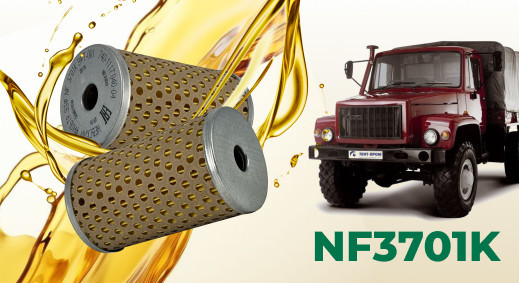 Это оригинальное исполнение, утвержденное еще в 1975 году. С 1976 года, с началом выпуска автомобилей КамАЗ, он стал повсеместно применяться. Фильтр NF3701K имеет внешнюю защиту из специального масло бензостойкого картона, что делает его более технологичным и надежным.